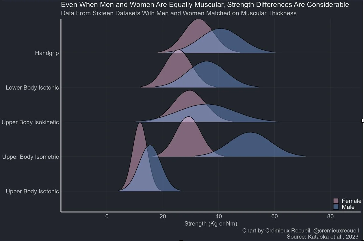 The study tested the possible sex differences in various strength outcomes when pair-matched for muscle thickness. Even when muscle thickness was the same, males had considerably greater strength across a variety of measures.